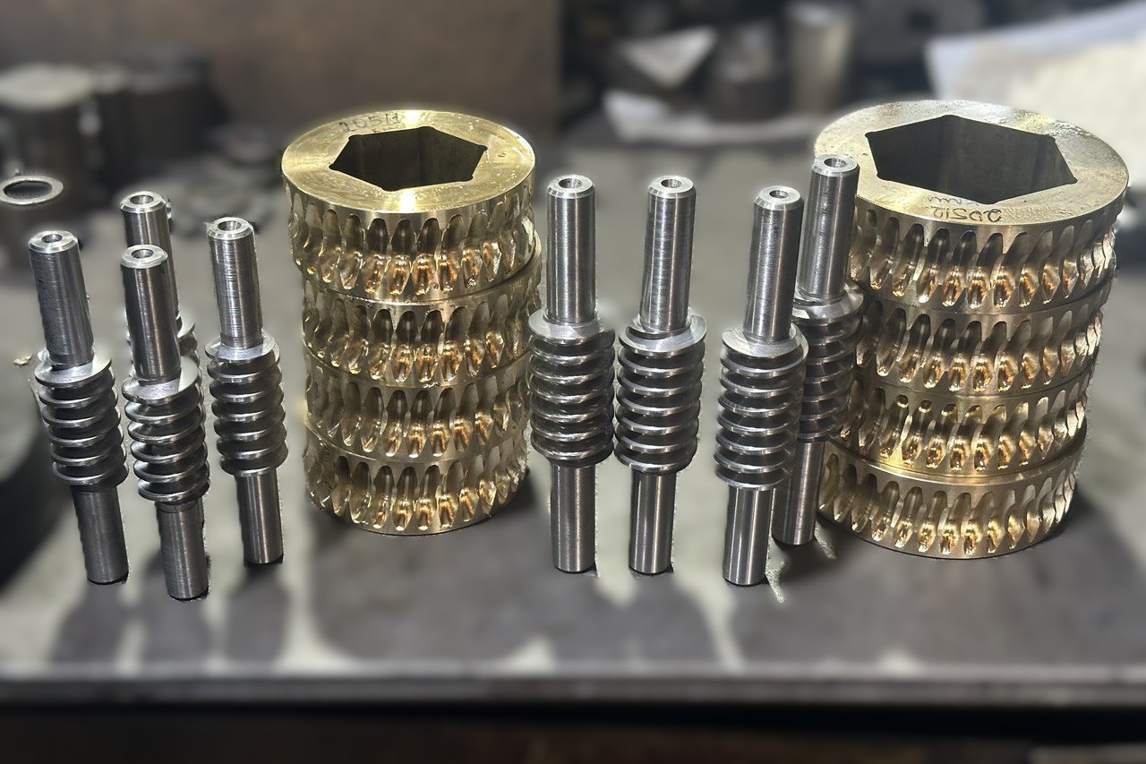 Червячные валы однозаходные и многозаходные из стали с обьемной или ТВЧ закалкой.